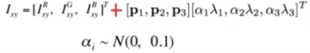 다음으로는 jittering입니다. 색깔에 변화를 주는 방식으로 RGB 픽셀 값을 랜덤하게 바꾸면 이상해질 수 있으므로 전체 이미지의 RGB 픽셀 값(즉 3x3) 공분산에서 고유값과 고유벡터를 구합니다. 그리고 위의 공식에 따라 나온 값을 각각의 픽셀에다가 더해줍니다. 위의 사진과 같이 여러가지 색으로 jittering이 됩니다.
