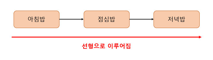 간단한 예시를 들어보자면 우리가 먹는 식사를 아침밥, 점심밥, 저녁밥이라고 할 때 아래와 같은 순서를 가지는 것을 의존성을 가진다고 할 수 있습니다.