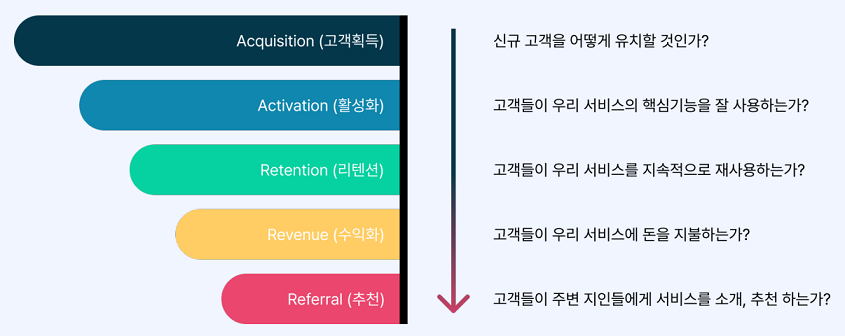 - 리텐션 (Retention) , 전환율 (Conversion) , 순수 추천 지수 (Net Promotor Score , NPS)