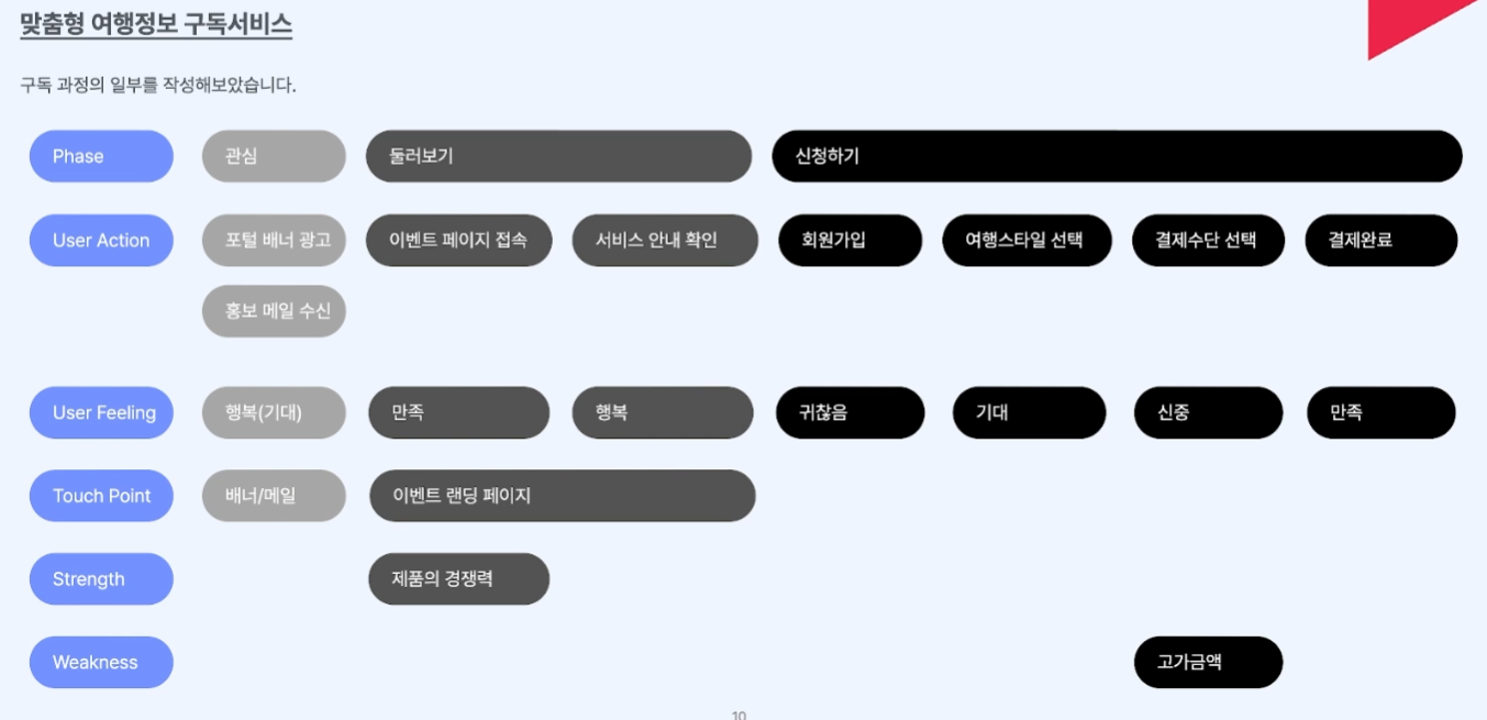 - 기회 및 임팩트 : 기회, 가설 및 가설 검증지표, 임팩트 예측(사용자가 얻게 될 가치)