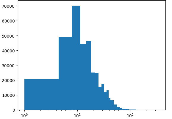 앞에서 y축에 로그 스케일을 적용했던 것처럼 x축에도 로그 스케일 적용할 수 있다. 이렇게 하면 x축을 따라 작은 값과 큰 값의 차이가 줄어들 것이다. y축에 로그 스케일을 적용하는 yscale() 함수와 비슷하게 xscale() 함수를 사용하면 된다.