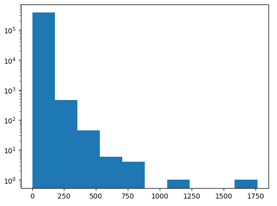 맷플롯립에서 y축을 로그 스케일로 바꾸려면 다음처럼 yscale() 함수에 'log'를 지정하면 된다.