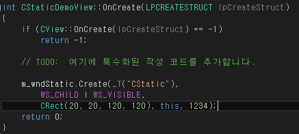 | SS_BLACKFRAME | 프레임 윈도우의 테두리 색과 같이 짙은 테두리를 그려줌 (문자열 표시 X) |