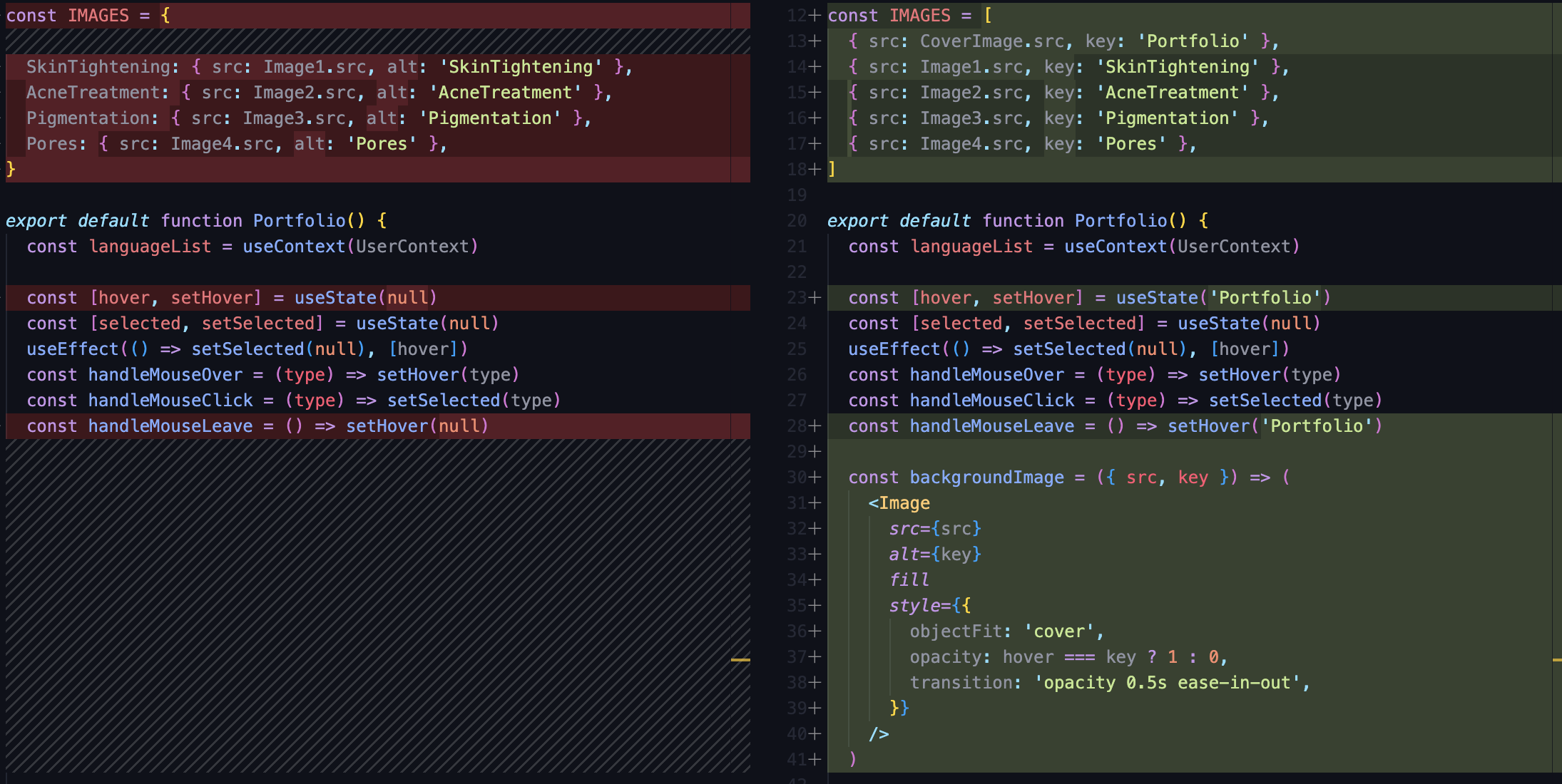 📌2.상태값 hover의 초기값을 'Portfolio'로 설정하여 커버 이미지가 기본적으로 표시되도록 합니다.