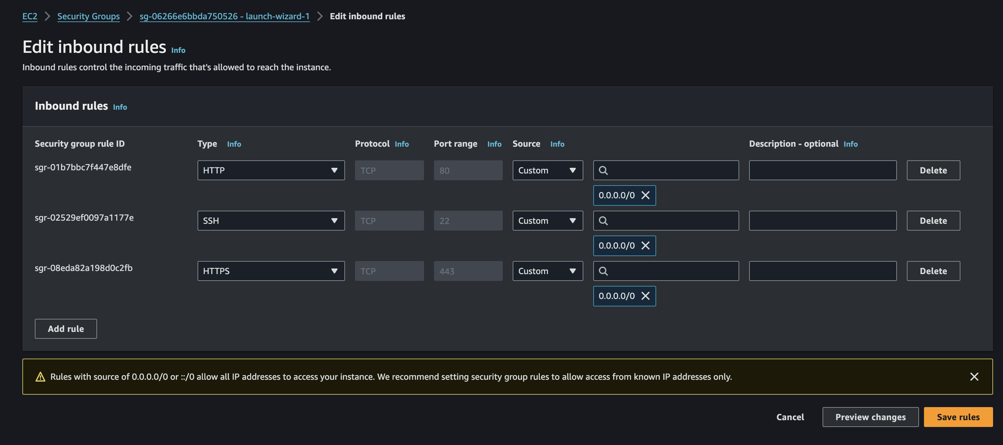 STEP3: Modify Security Settings > Edit Inbound Rules
