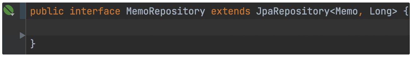 The interface of JpaRepository<"@Entity class", "@Id data type"> needs to be declared. Because you are using predefined methods from the JpaRepository, you can excute most basic database operations without adding new methods in the class repository.