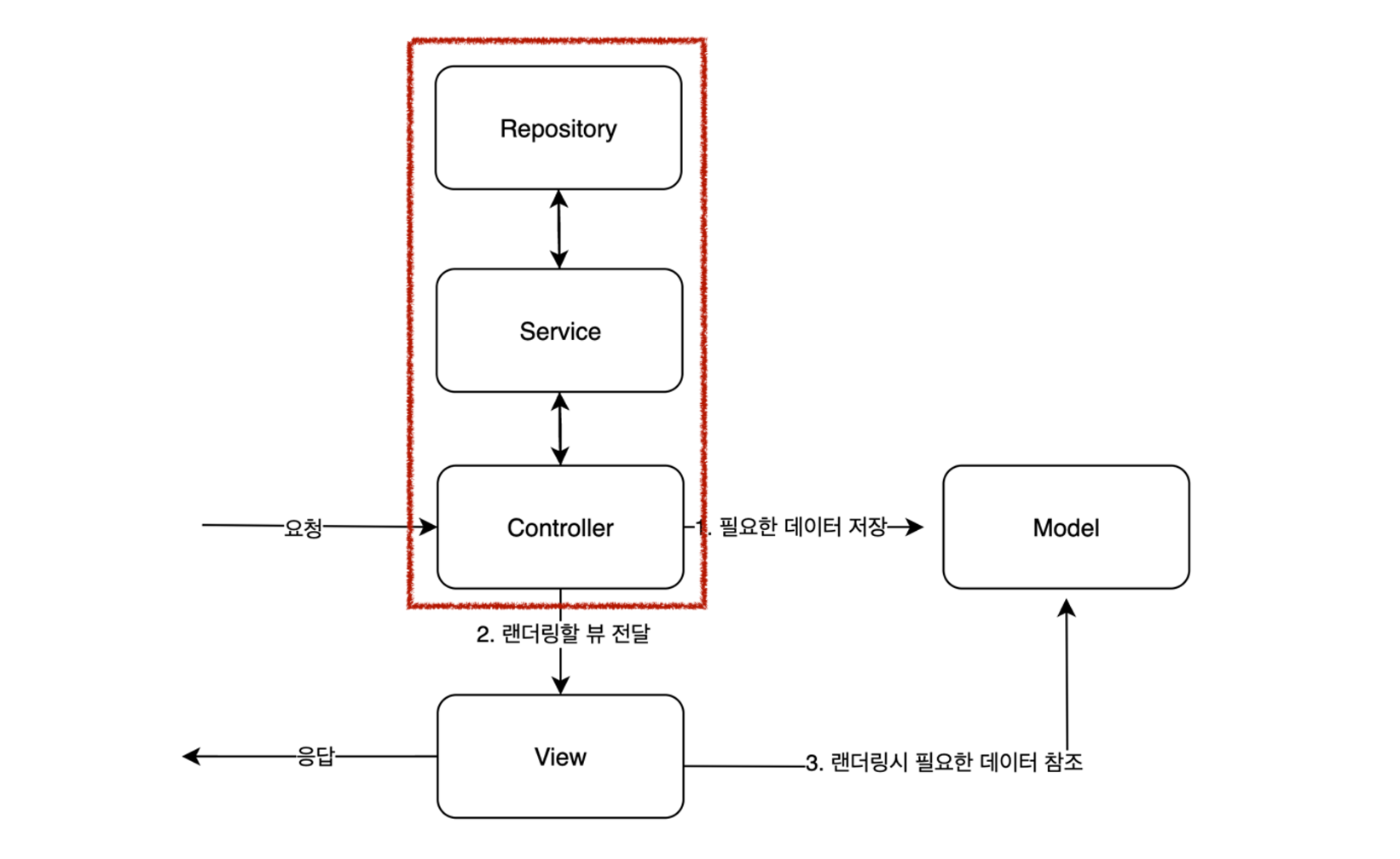 The layer that processes business logic. It handles the requests received from the controller, manipulates data, and returns the results.