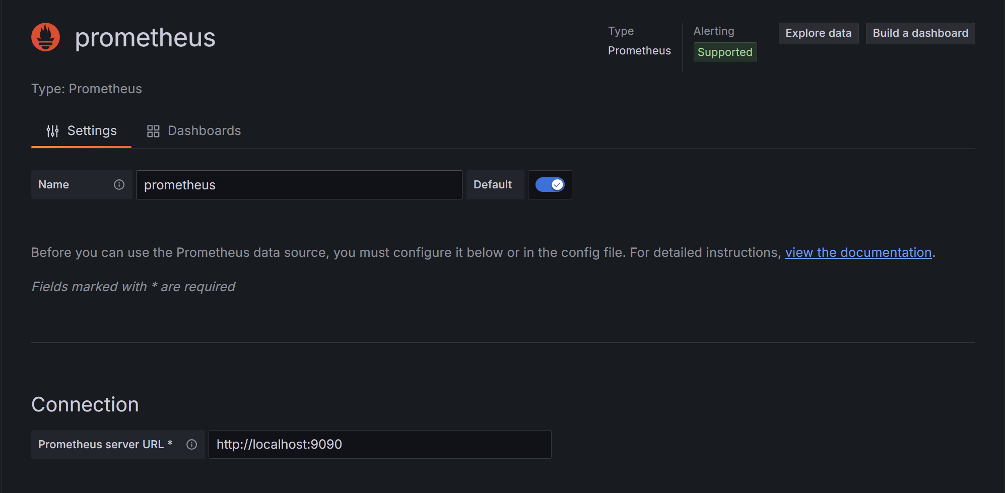 Connection에 http://localhost:9090 입력 후 Save & test 클릭