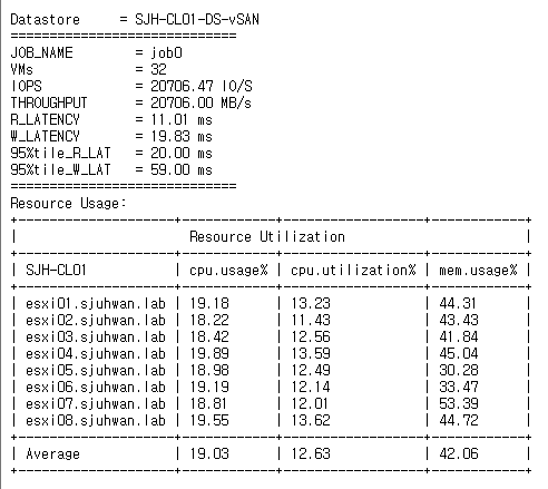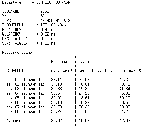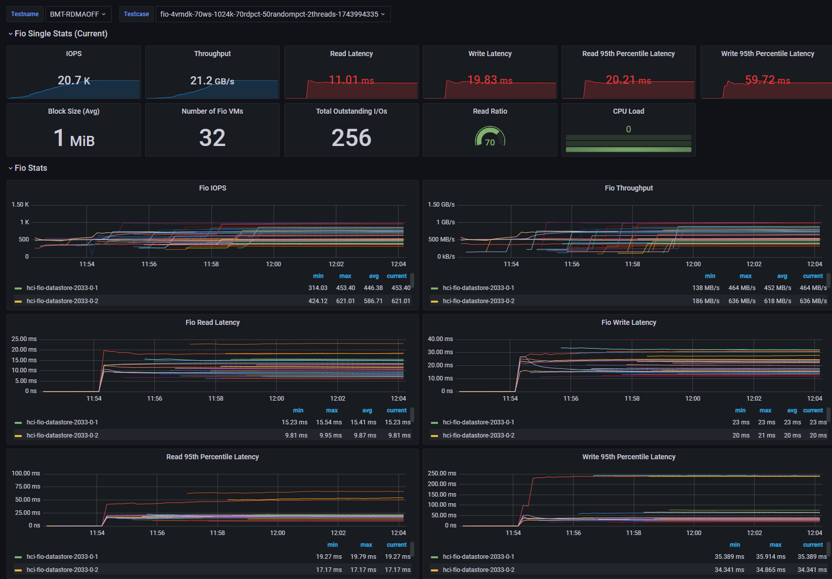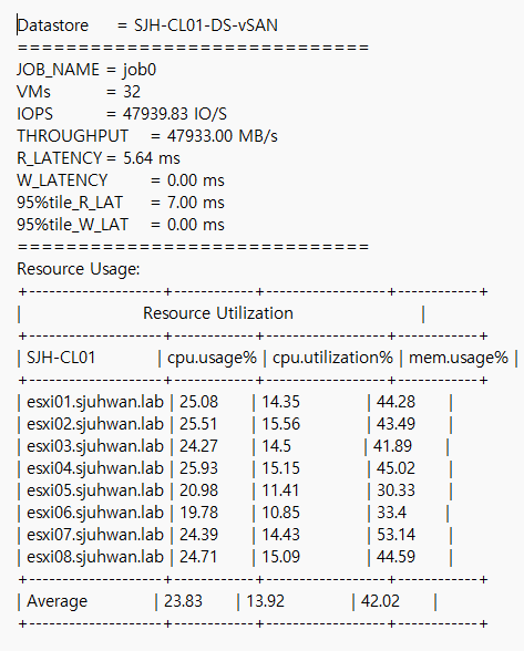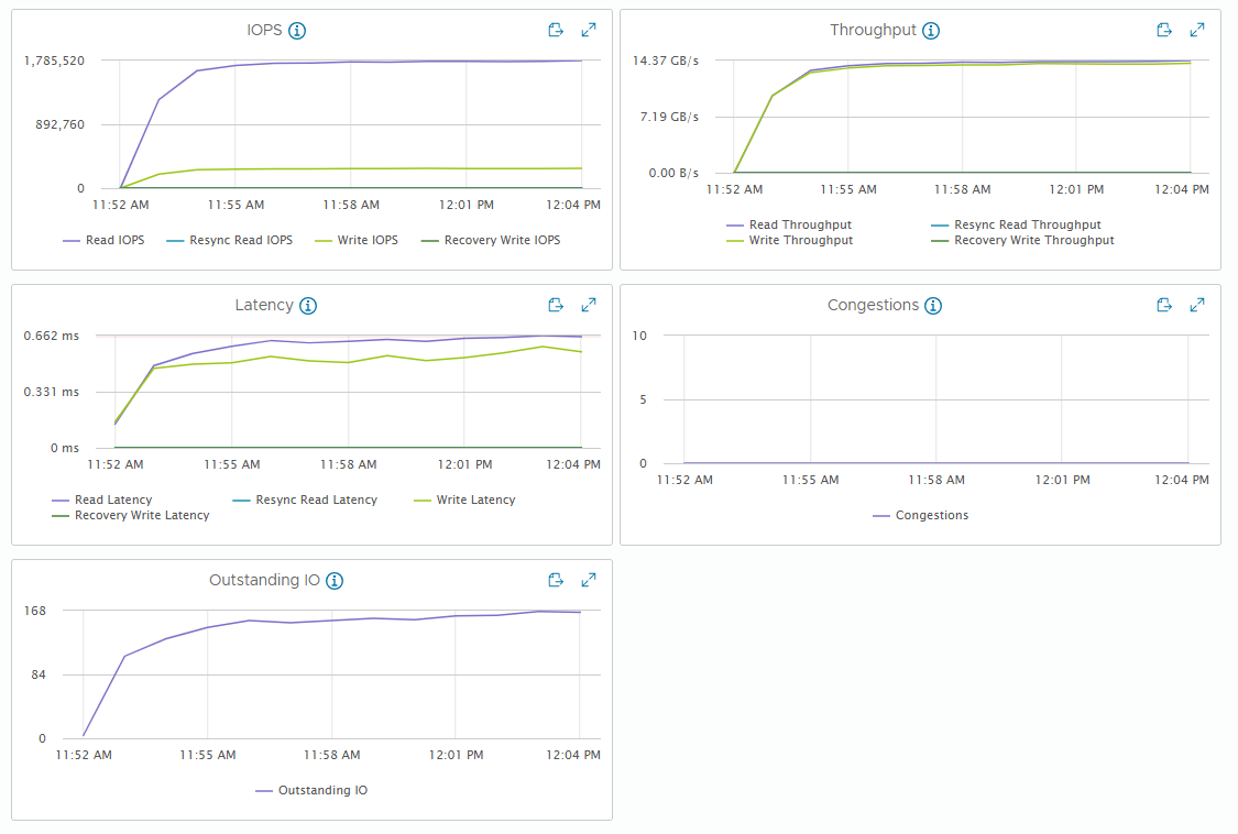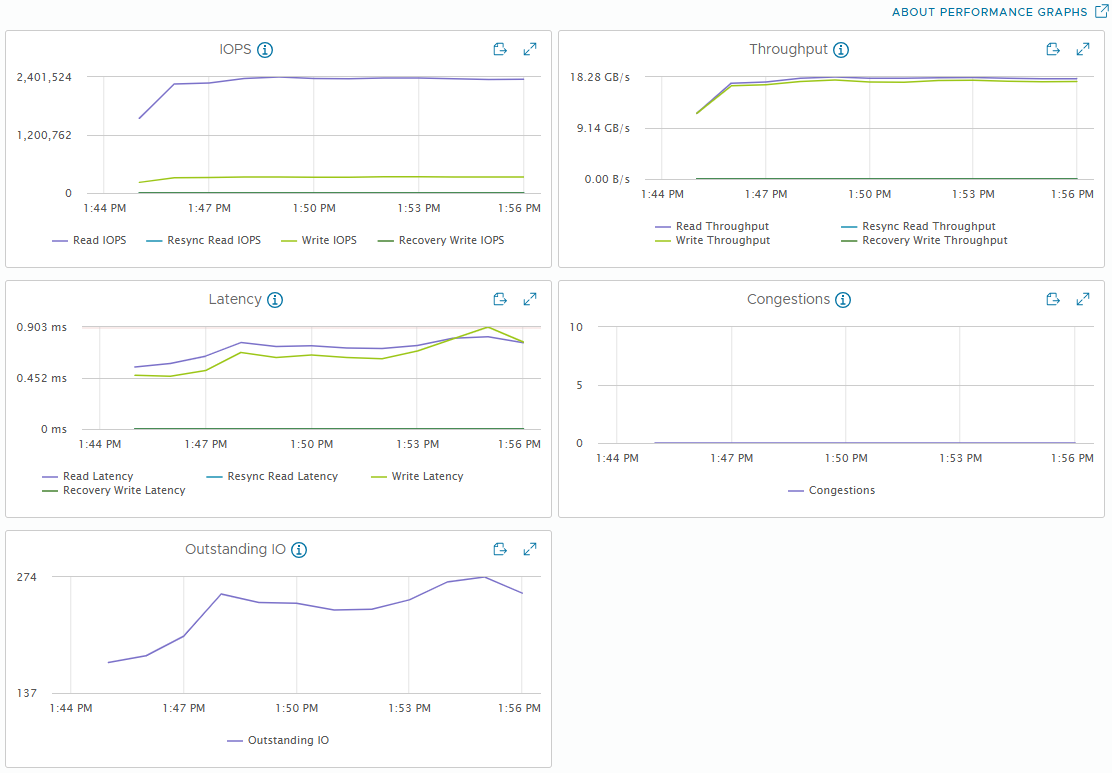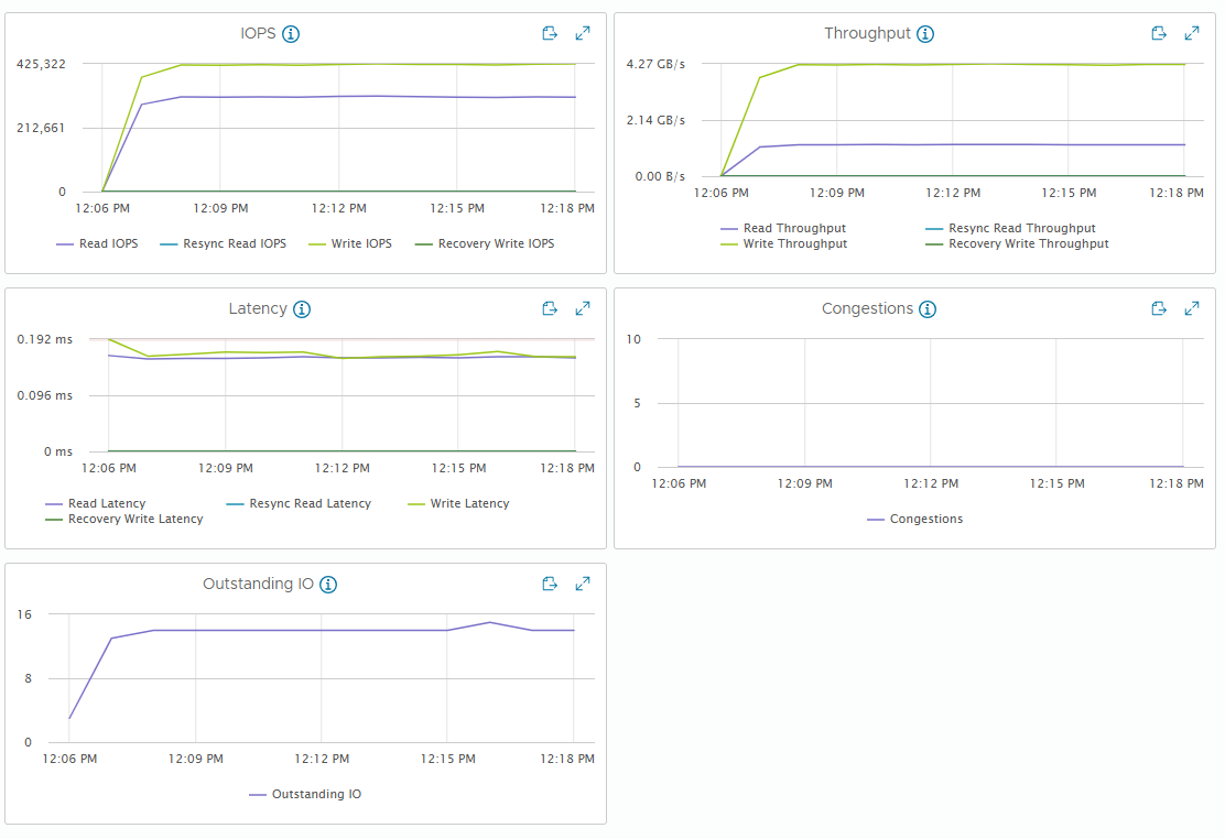 For CPU utilization, I was consistently saw about 10% lower utilization in the RDMA-less case, but this was due to the relatively lower throughput, which reduced the load on vSAN.