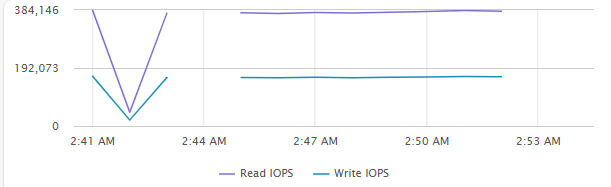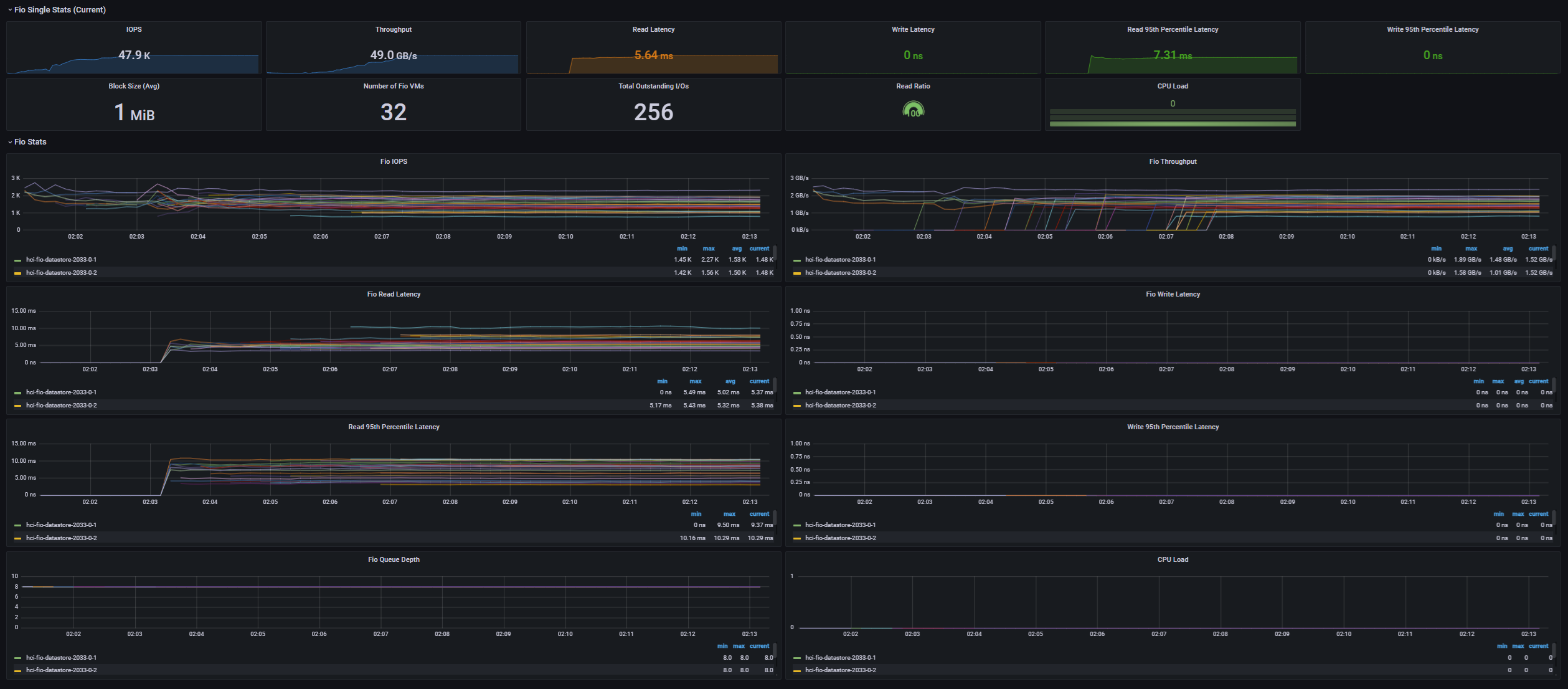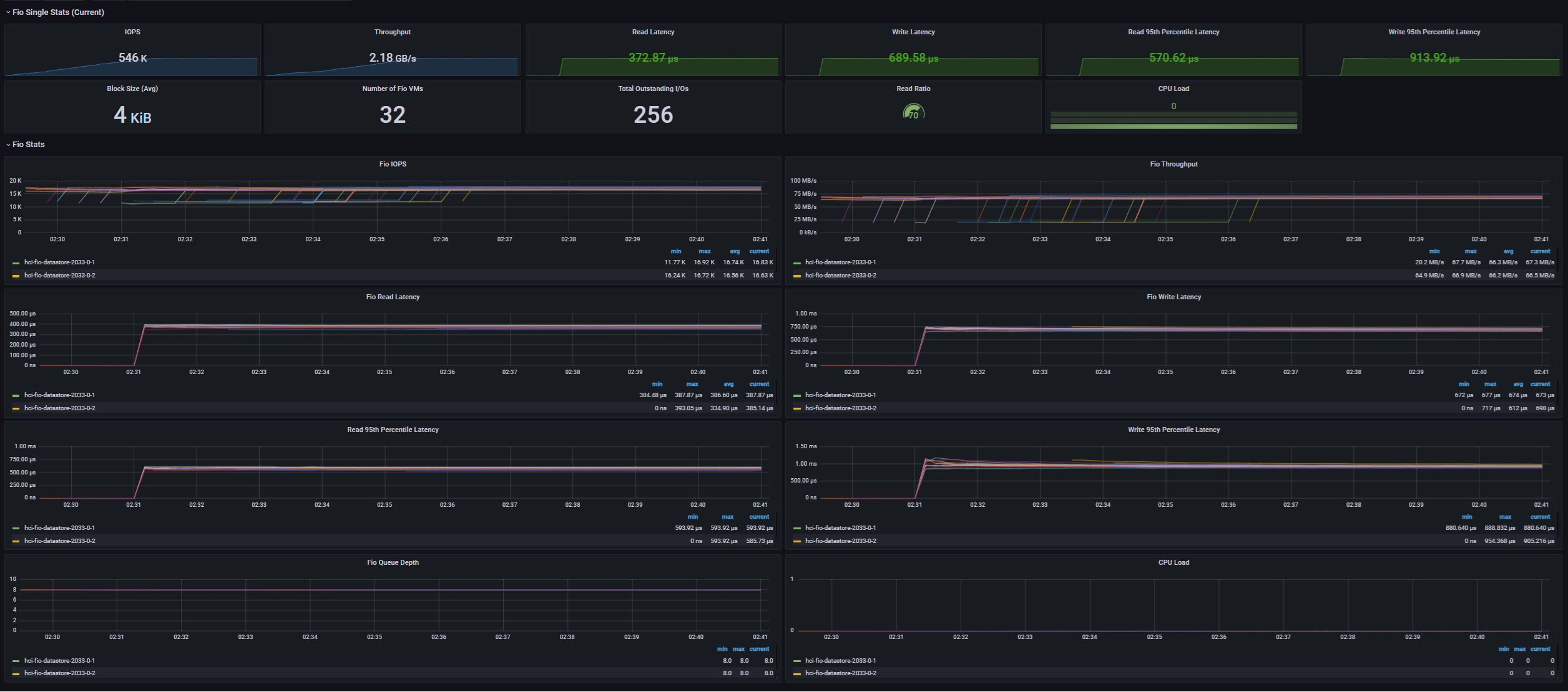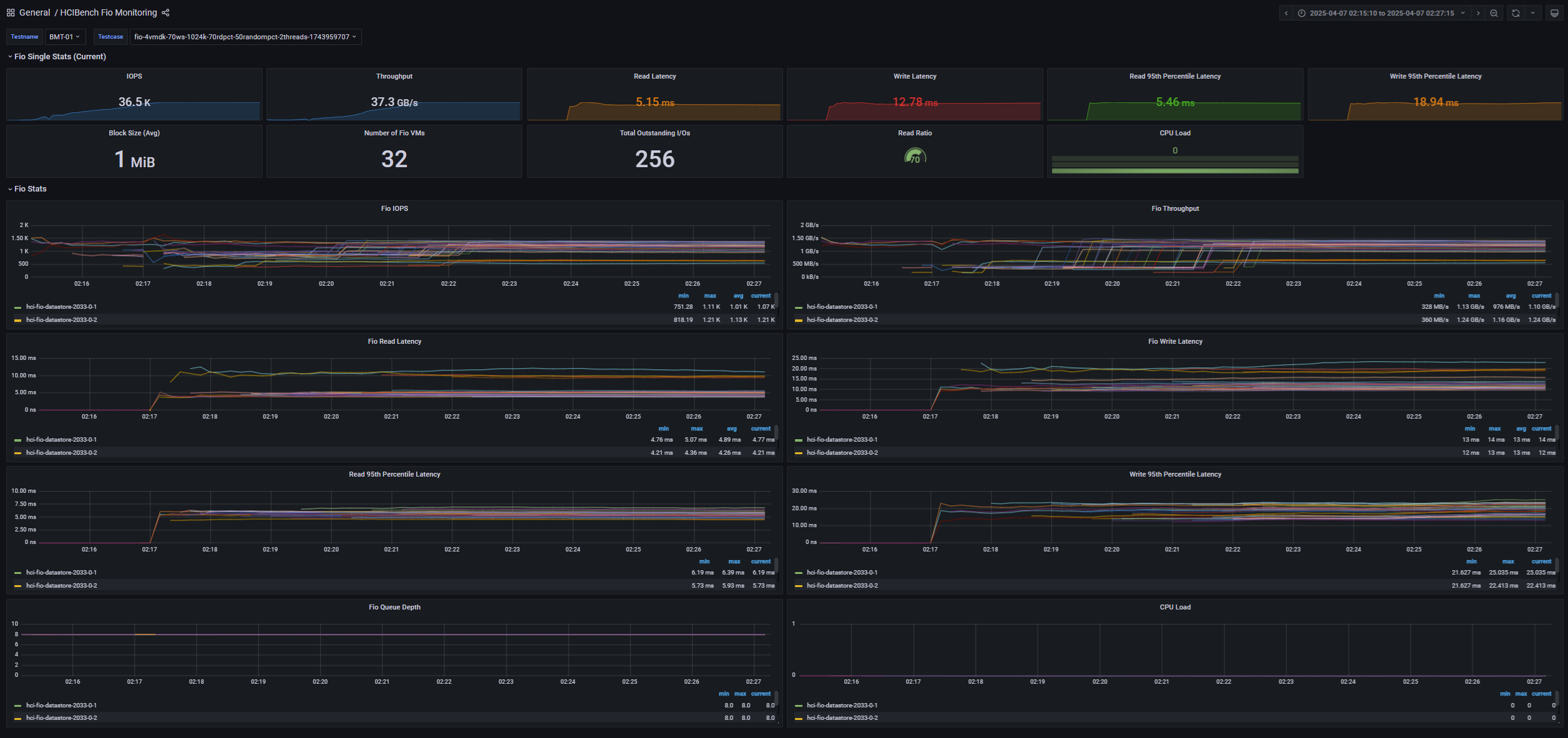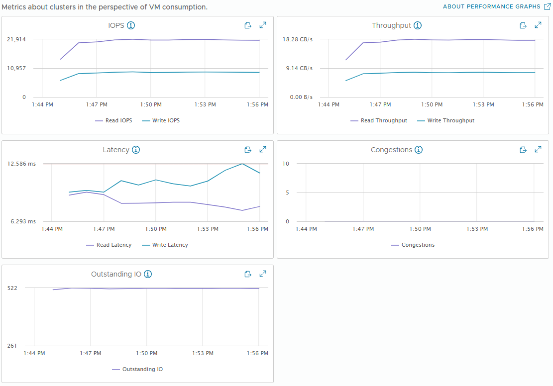 The backend I/O seems to be the bottleneck, reaching 1.785 MIOPS in the 1MiB test, which contributed to the overall VM latency increase.
