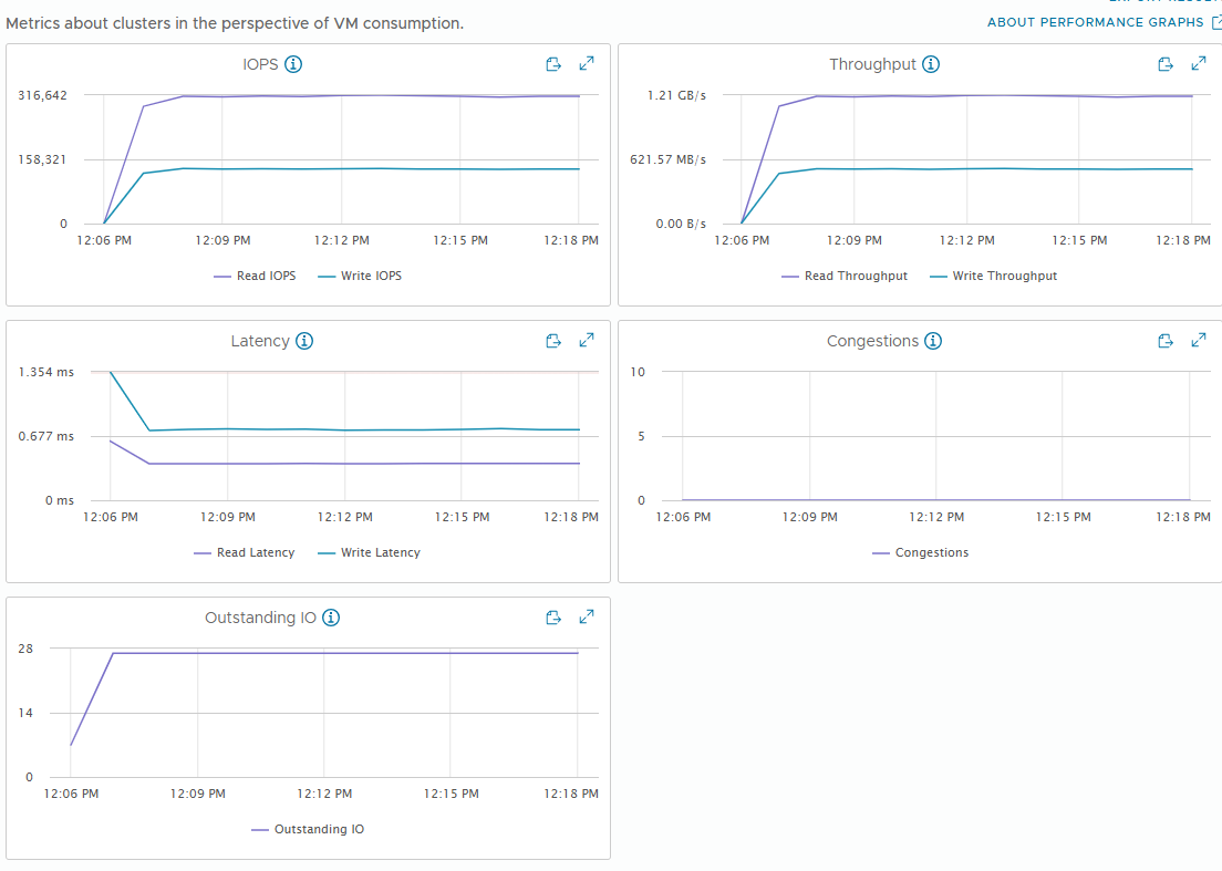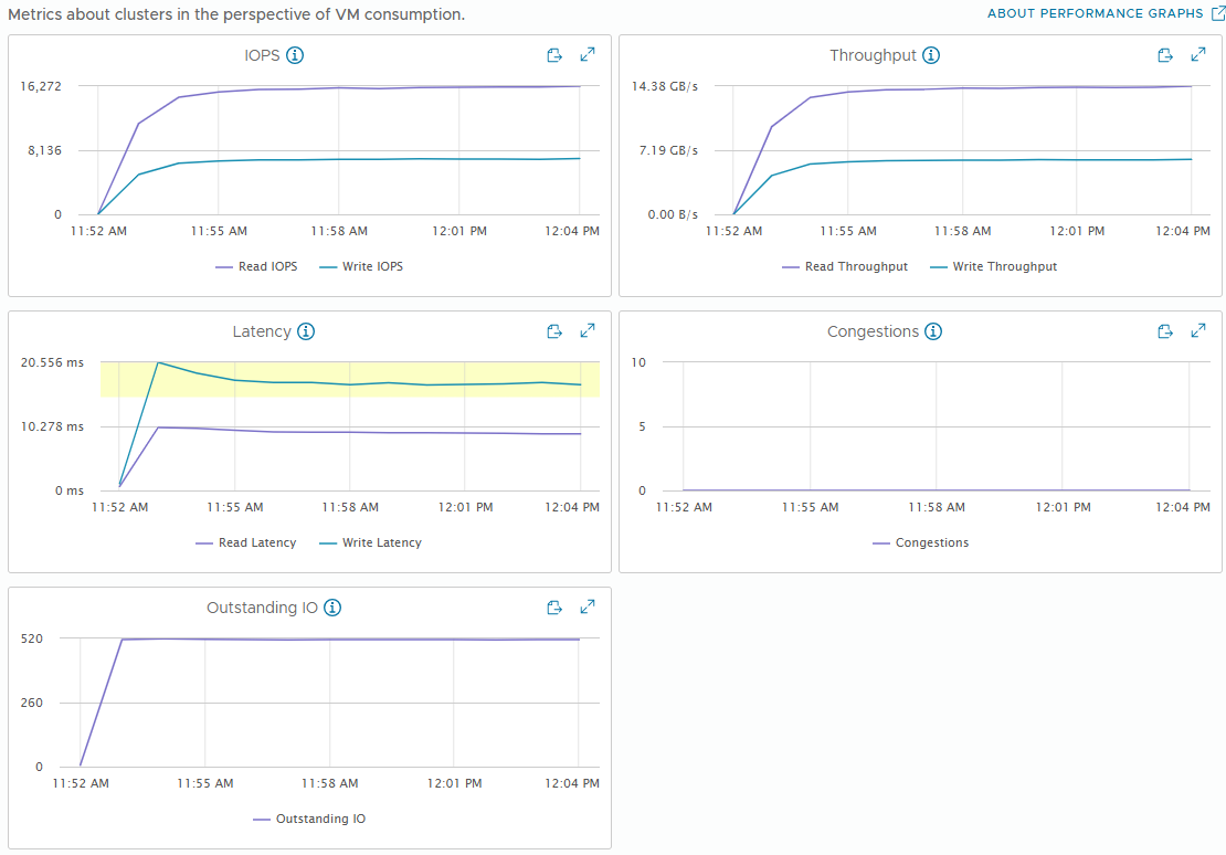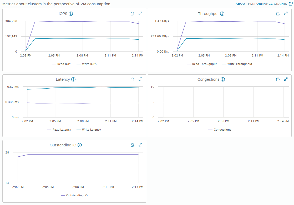 vSAN collects and stores performance metrics every five minutes by default. However, in a benchmark environment, a collection interval of 5 minutes is too long, and we should reduce the collection interval to the minimum configurable value of 1 minute.