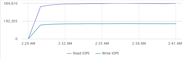 VM metrics closely match what is measured by the application (in this case, FIO), while backend metrics can vary significantly based on workload patterns.