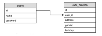 앞서 본 one to one 예에서 user_profiles 테이블의 user_id 컬럼은 users 테이블에 걸려있는 외부 키라고 지정합니다.