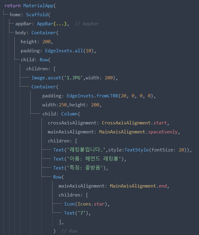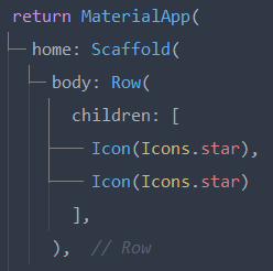 Row안에 children을 넣고 그 안에 위젯을 넣어준다.