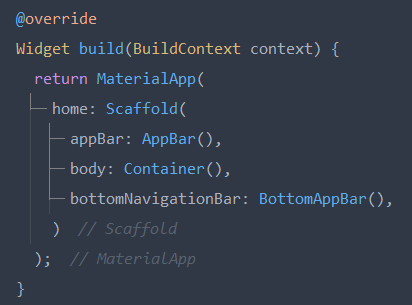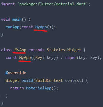 MaterialApp는 구글 느낌나는 위젯들을 제공하고