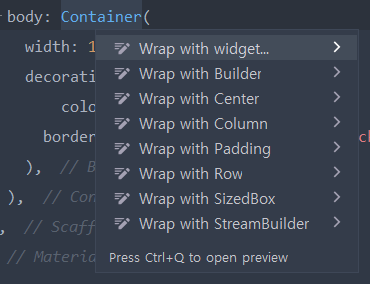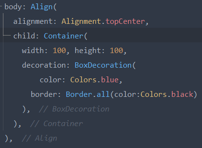 alignment: Alignment.정렬위치로 컨테이너를 원하는데 정렬할 수 있다.