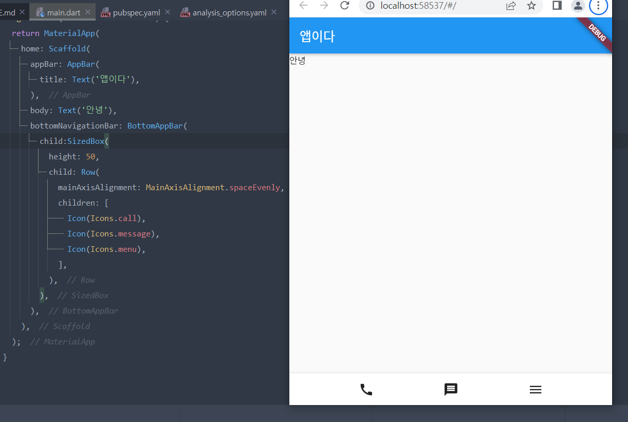 main.dart파일에서 밑에 있는 예제 코드들은 다 날려주고
