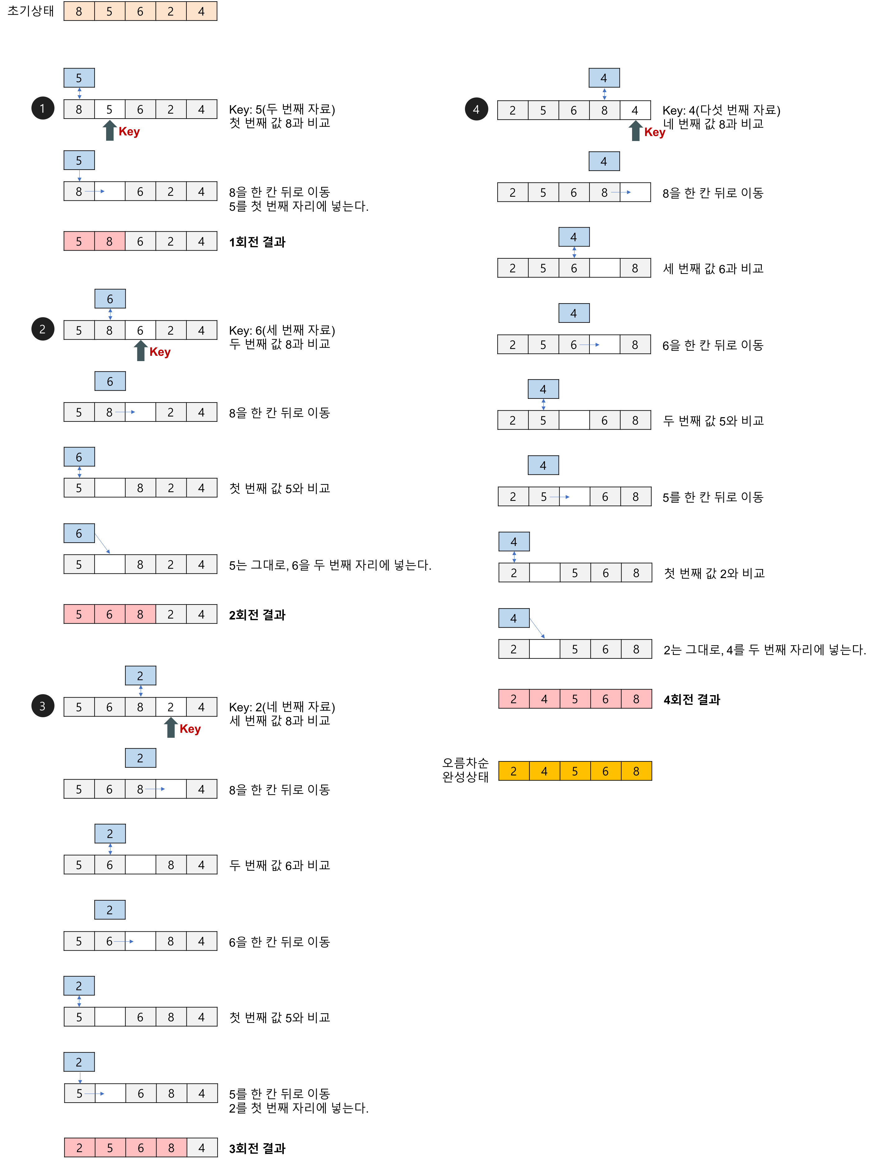 // 정렬된 부분에서 현재 원소의 삽입 위치를 찾아간다.