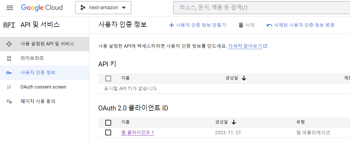 OAuth 클라이언트 id와 비번을 발급받아 적용했다