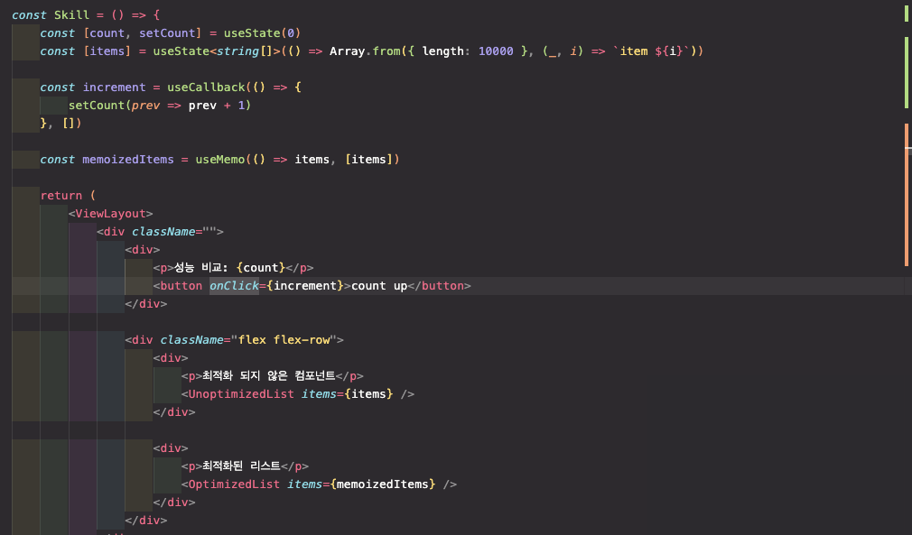 반면, 우측의 최적화된 리스트는 count의 상태가 변해도 리랜더가 일어나지 않는 모습이다.