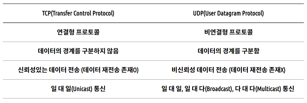 OSI 7계층 중 Layer4 :전송계층에서 사용되는 프로토콜.
