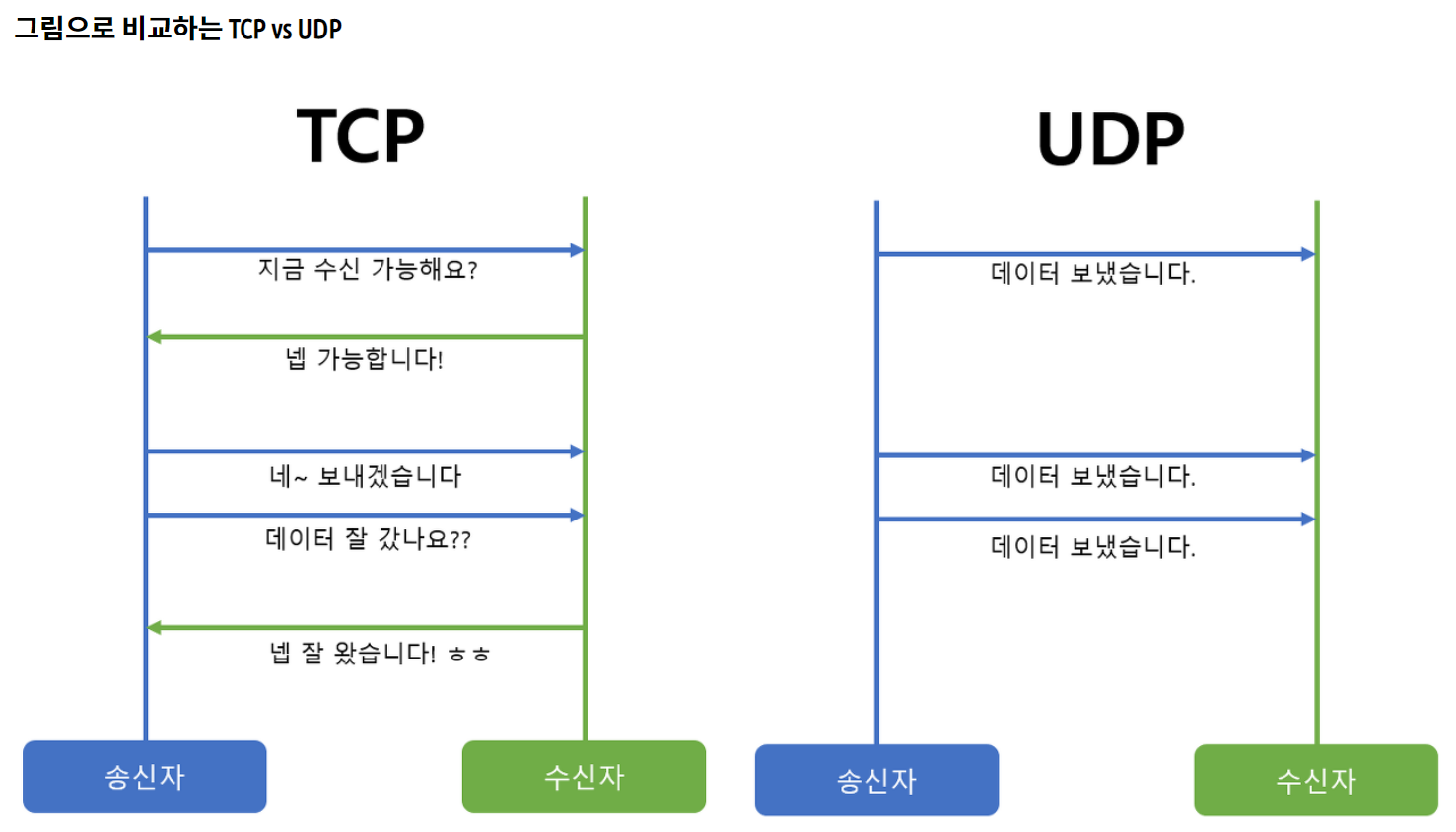 반대로 TCP는 신뢰성 있는 데이터 전송을 보장하지만 속도가 UDP보다 빠르지 않고 네트워크 부하가 있다.