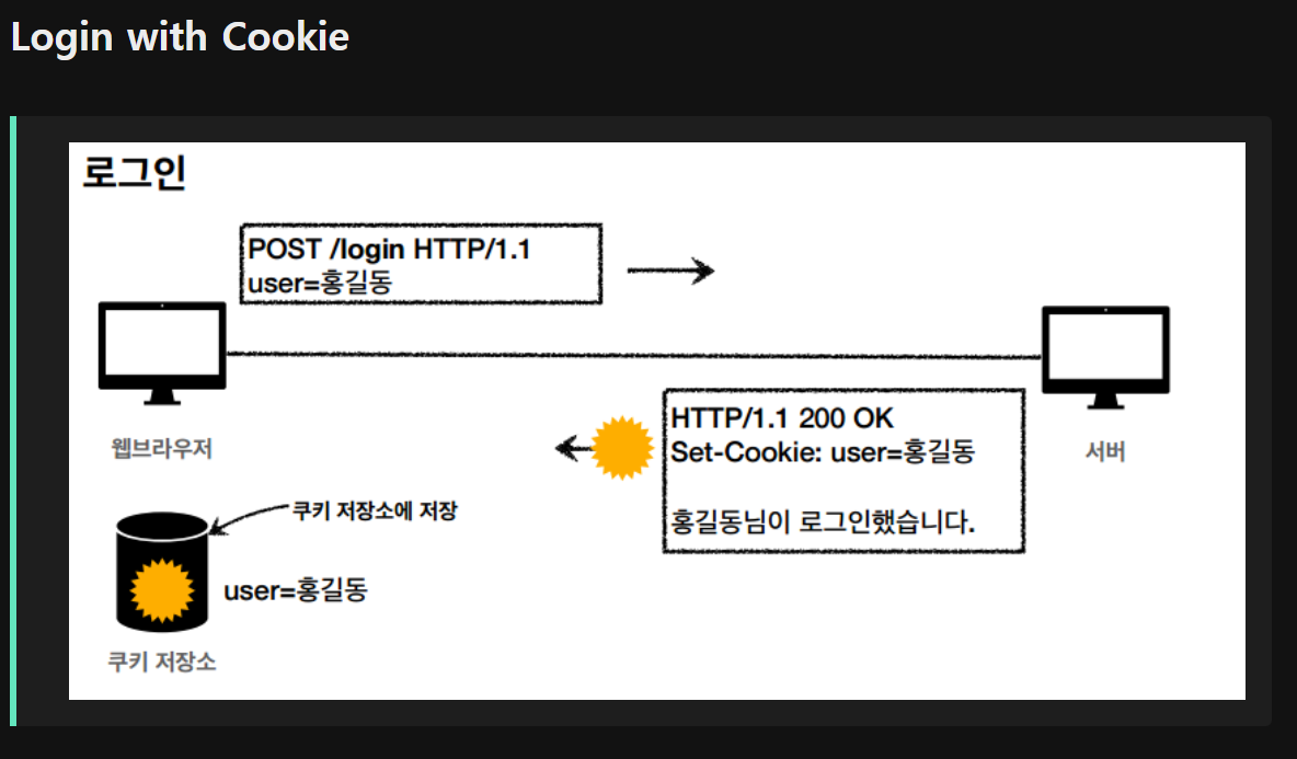 - 동일 사이트 재방문시 클라이언트의 PC에 해당 쿠키가 있는 경우,요청 페이지와 함께 쿠키를 전송한다.