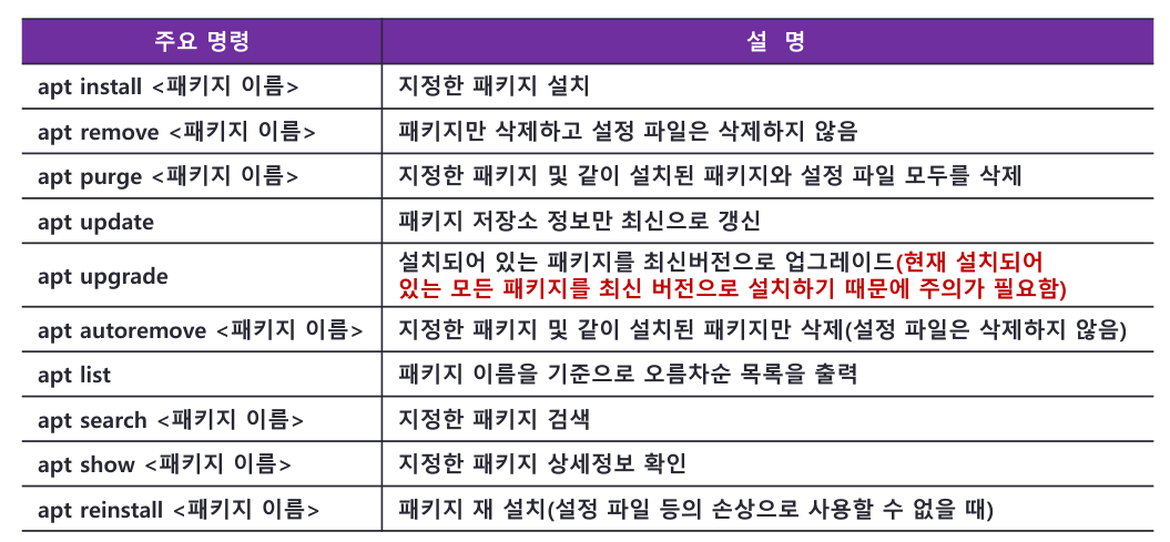 우분투는 apt 명령을 이용해 인터넷에 연결된 패키지 저장소에서 패키지를 다운로드 받