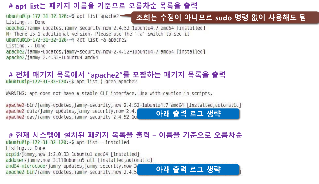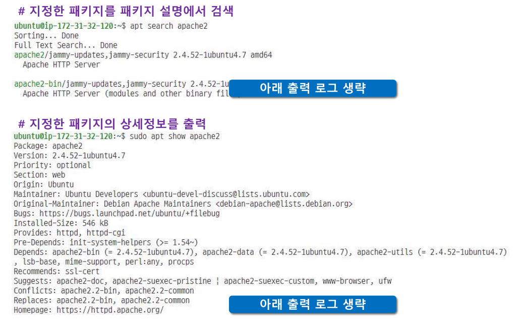 다음은 우분투 패키지 저장소에서 패키지 리스트를 조회하는 예이다.