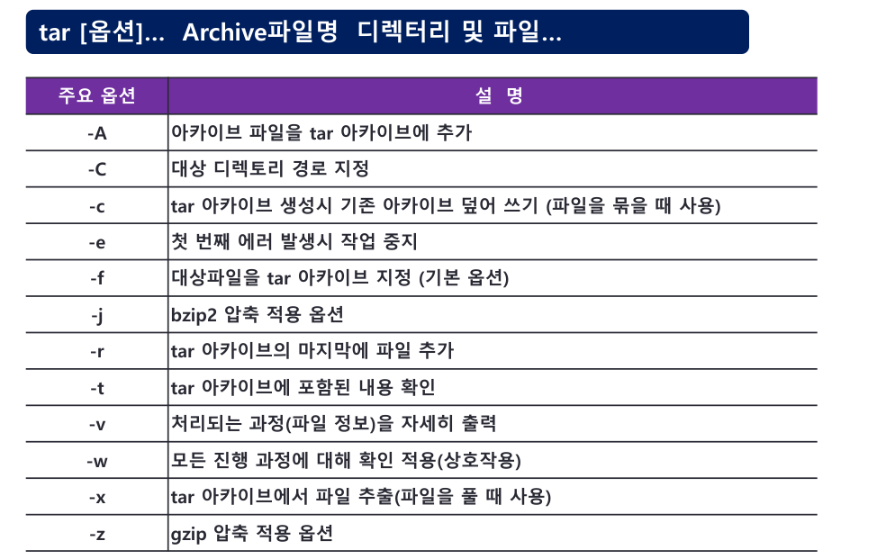 tar 파일은 리눅스 및 유닉스에서 가장 많이 사용되는 아카이브 파일로 tar 파일로 묶기전 파일의 소성과 디렉터리 구조 등을 모두 보전 할 수 있고 압축과 압축해제 등의 작업을 거치면서 파일이 변겨되거나 소실될 염려가 없기 때문에 소스 배포 파일을 만드는 요도로 자주 사용된다.