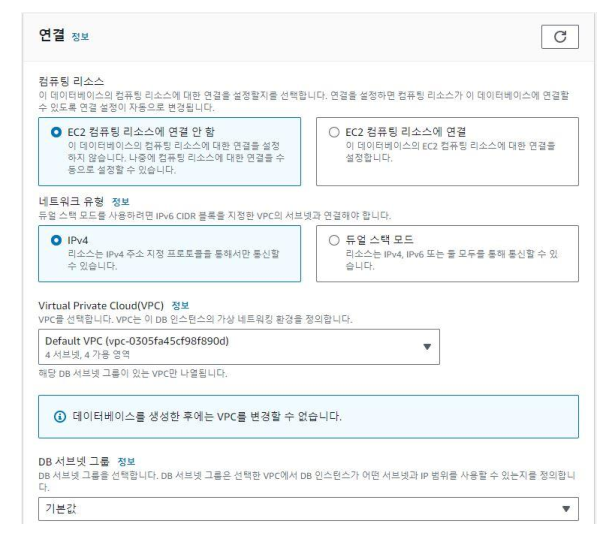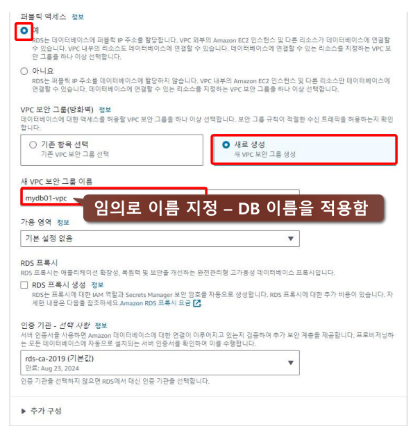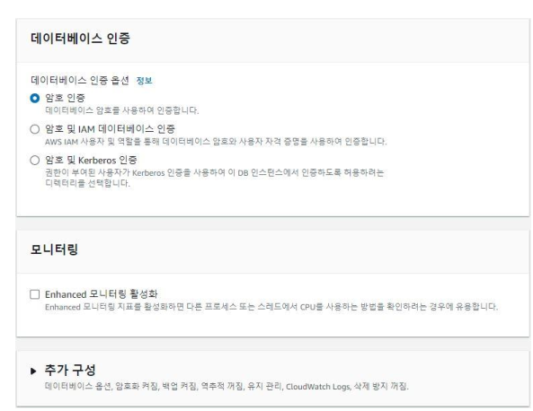 가하고 RDS에 접속해 데이터베이스를 생성한다.
