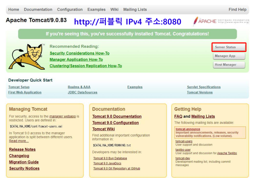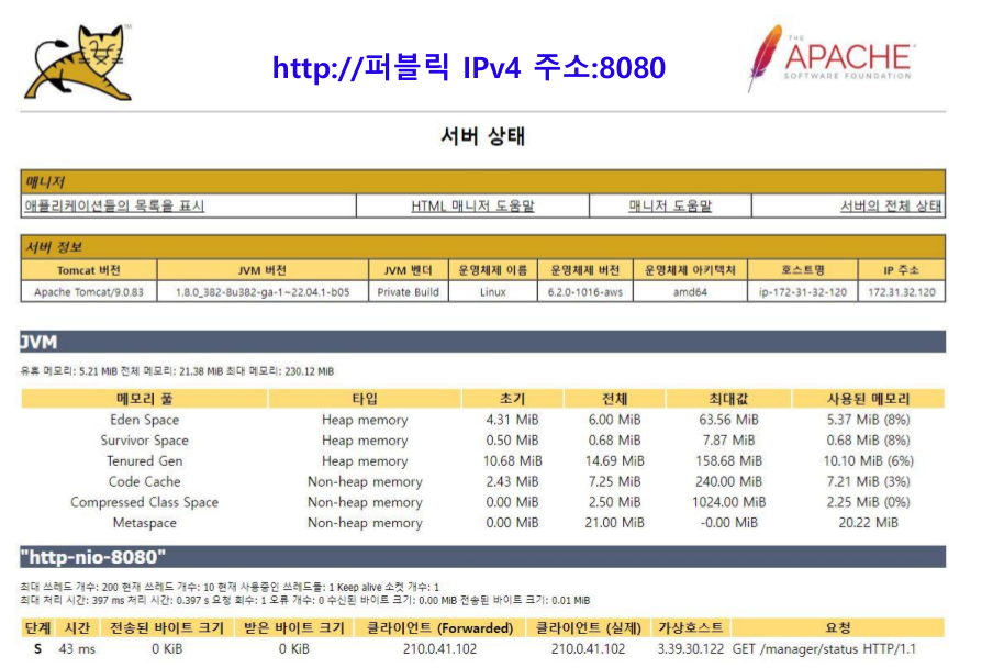 EC2 서버의 8080번 포트에 대한 인바운드 규칙을 추가하고 브라우저에서 아래 주소로