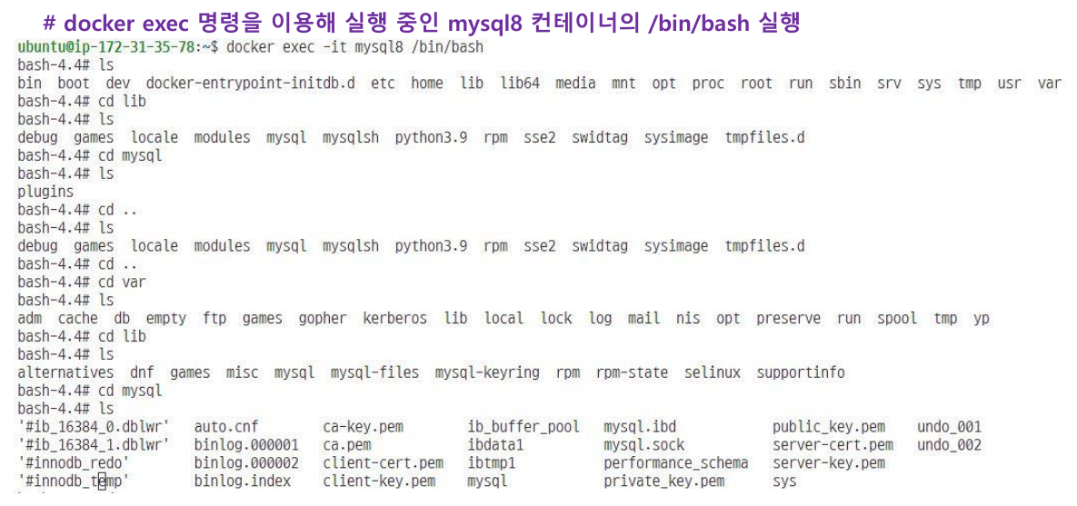 경하면 해당 컨테이너가 종료될 때 그 파일이 사라지게 된다. 만약 MySQL과 같이 DB에 저장되는
