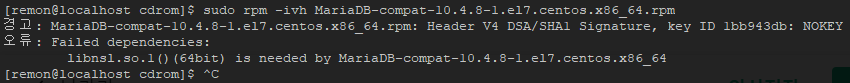 $ sudo rpm -ivh MariaDB-compat-10.4.8-1.el7.centos.x86_64.rpm