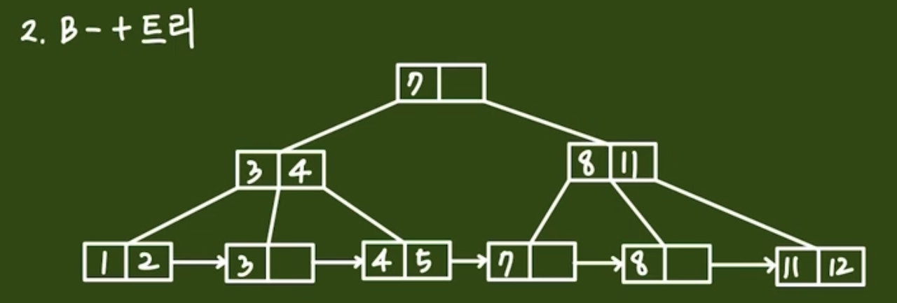 이를 개선하고자 B+Tree에서는 leaf 노드에 모든 데이터(key)를 저장하고 모든 leaf 노드를 linked list로 연결해두었습니다.