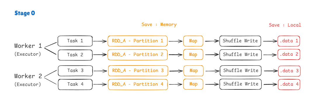 Spark에서는 이 Shuffling을 두 가지 단계로 분할하여 처리합니다.