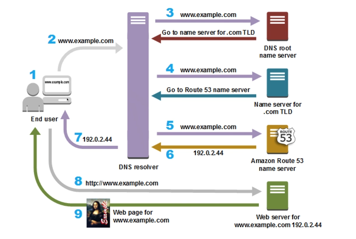 - 최종적으로 Local name server에 방문하여 DNS에 대한 주소를 받아옴