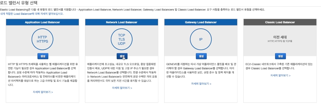 ( AWS 웹 페이지에서 EC2를 검색 -> 로드 밸런싱 -> 로드밸런서 )