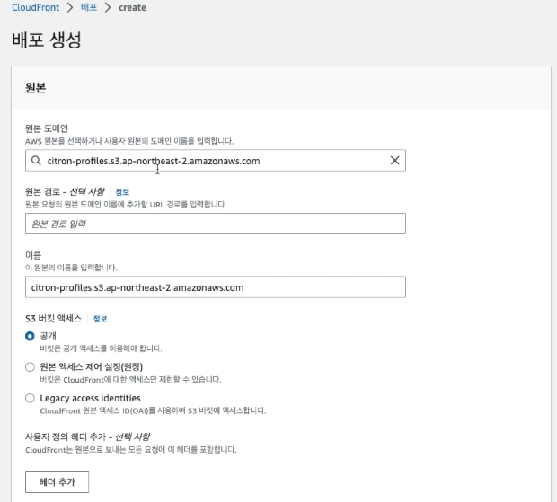 ( AWS 웹 페이지에서 CloudFront를 검색 -> 배포 -> 배포 생성 )
