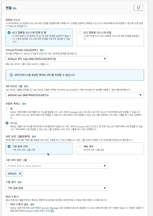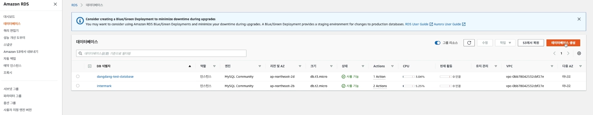 ( AWS 웹 페이지에서 RDS를 검색 -> 데이터베이스 -> 데이터베이스 생성 )