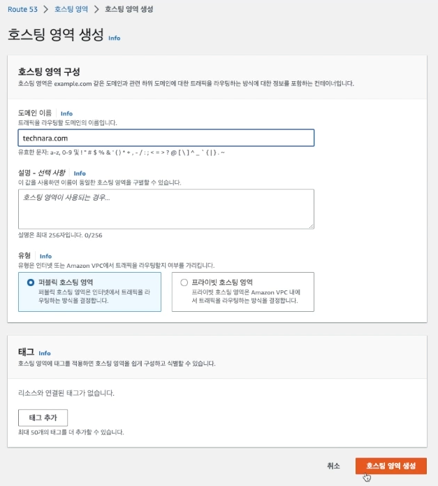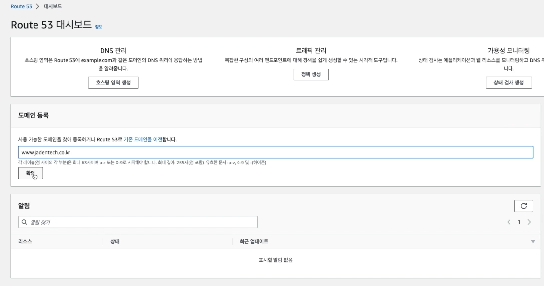 도메인을 외부에서 구매하거나, AWS에서 구매해야 등록 가능