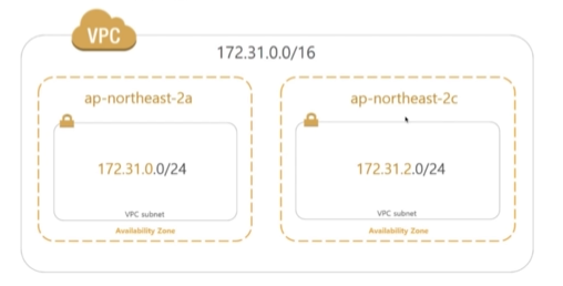 ( Region 내부에 여러 AZ를 둘 수 있고, AZ 하나에 Subnet이 각각 들어갈 수 있음 )