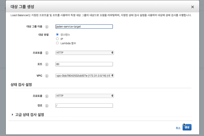 - 로드밸런서가 대상 그룹에 대해 각각의 대상으로 지정한 프로토콜, 포토 번호를 사용해 요청을 전송