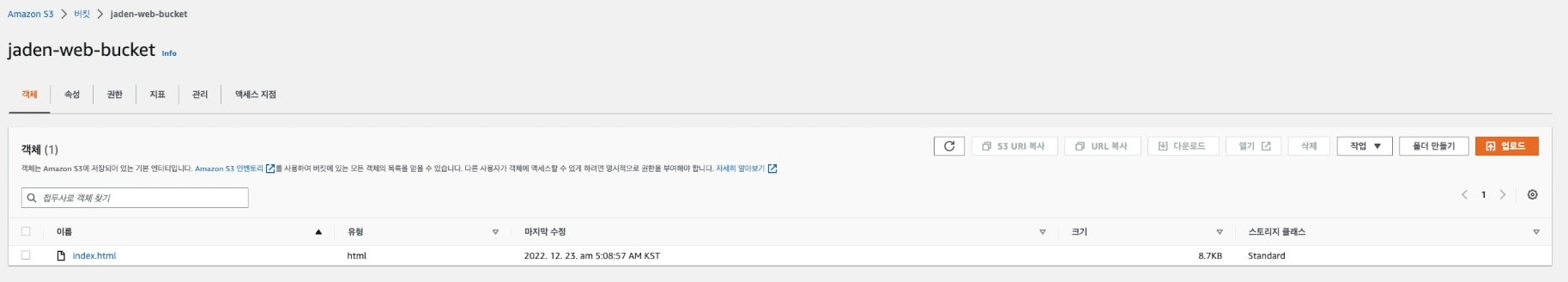 업로드한 html으로 웹 정적 호스팅