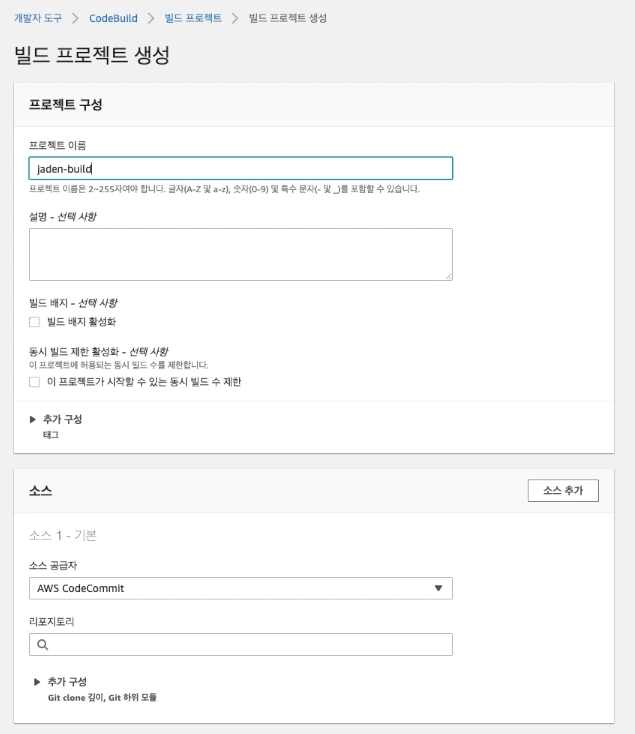 ( AWS 웹 페이지에서 CodeBuild를 검색 -> 빌드 프로젝트 )