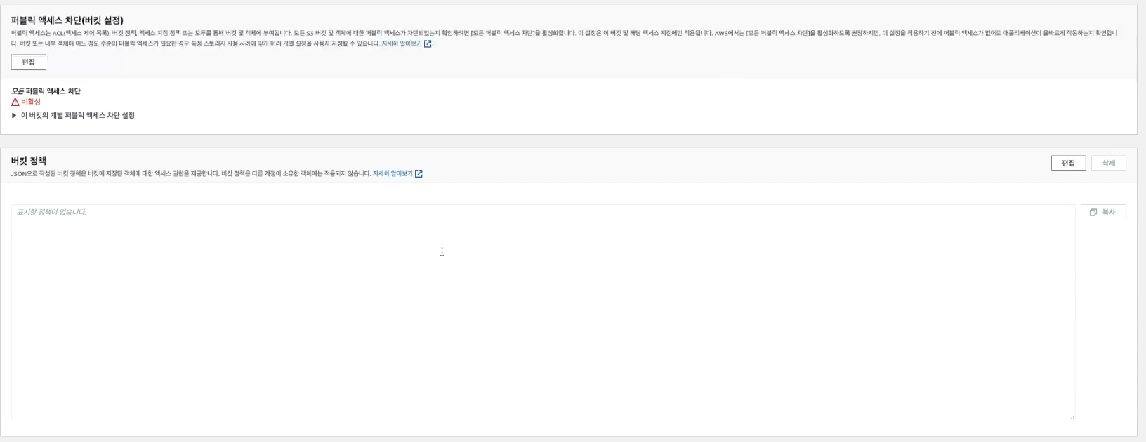 ( 만든 버킷 선택 -> 권한 )