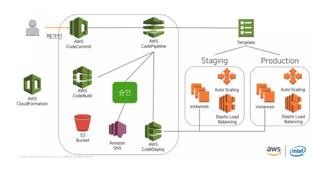 ( 위의 CodeCommit부터 CodeBuild, CodeDeploy까지 한번에 다 엮음 )