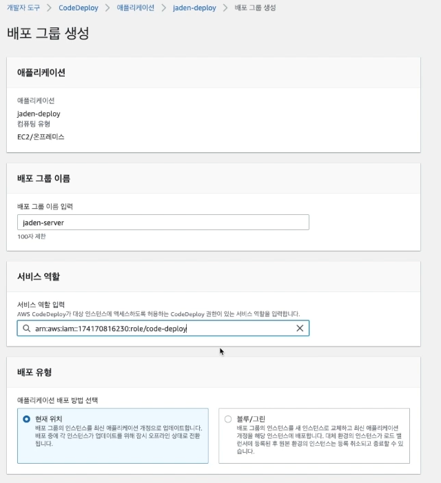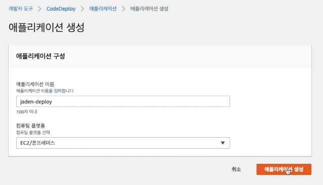 ( AWS 웹 페이지에서 CodeDeploy를 검색 -> 애플리케이션 )