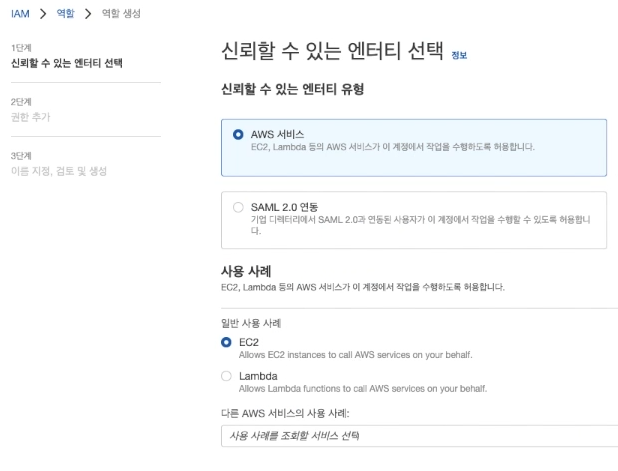 사용하는 곳에 알맞는 역할과 정책을 선택하여 추가하는 작업을 해야한다.