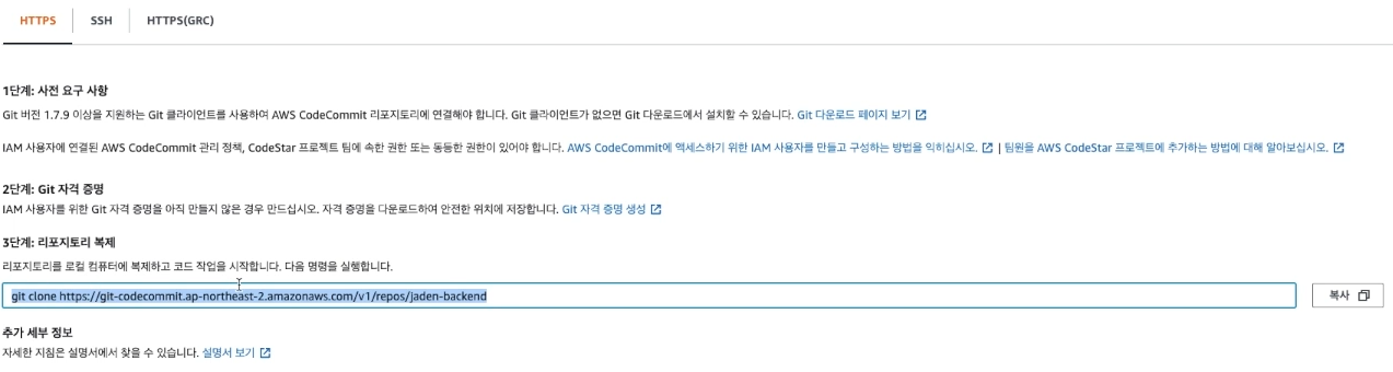 ( AWS 웹 페이지에서 CodeCommit를 검색 -> 리포지토리 )